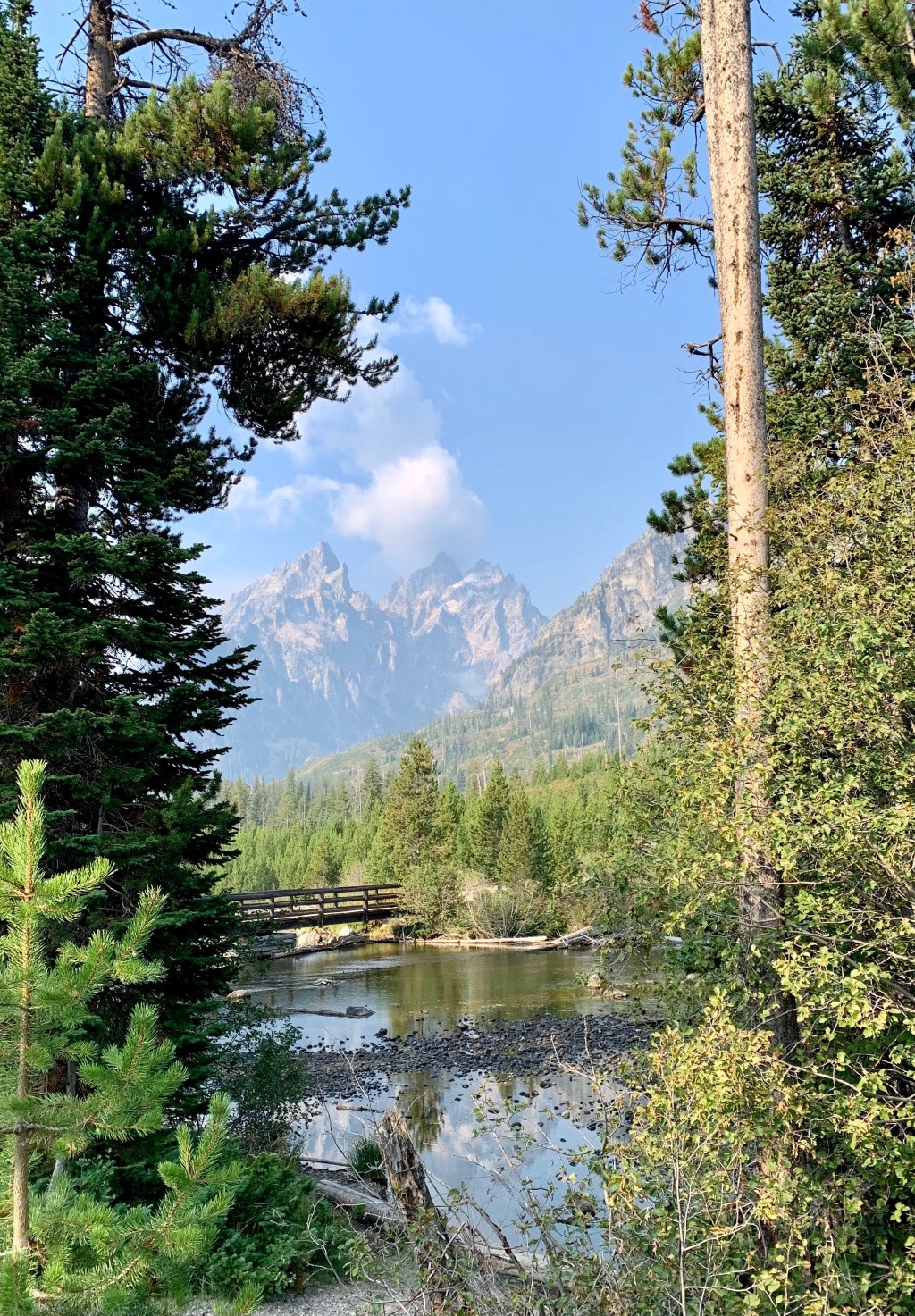We hiked counter-clockwise around the lake, and I highly recommend you do the same. It’s a longer hike to get to the boat dock heading in this direction (did I mention there’s a ferry that can take you across Jenny Lake if you want a shortcut to the Hidden Waterfall?), but we had to share the trail with nearly no one for several miles. About 3 miles into the hike, we spotted a mama bear and two cubs. Armed with several cans of bearspray and one friend who is a literal Park Ranger, I was only moderately terrified of being mauled. But Mama Bear and Cubs stayed as far from us as we did from them. I did see them climbing a tree, though. Did you know bears really do that? It was wild.