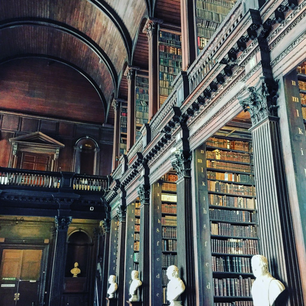 - Trinity College, or the University of Dublin, is another great spot. Established by Queen Elizabeth in 1592, Trinity College is Ireland’s oldest surviving university. Stop by the famed Trinity College Library to experience the Long Room, which has housed The Book of Kells for nearly 500 years, among other uniquely Irish treasures. This library is everything a book lover wants a library to be — tall stacks, dark wood, high ceilings, and the musky scent of old paper.