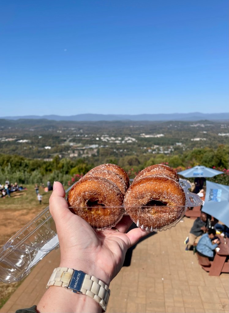When we talked about where we wanted to go for our birthday trip this year, chief among our desires was a quintessential fall experience. Being the basic b’s that we are, we love apple picking, and Carter Mountain Orchard in Batesville, Virginia is a mecca for that. The orchard grows various varieties of fruits throughout the year, so there’s almost always something for you to pick. For fall, though, you need to plan ahead a bit and purchase a timed entry ticket. Keep in mind that the ticket price is for entry only, and you have to pay for any fruit you want to pick separately. The orchards are, as advertised, on the side of a mountain, so if you have mobility issues, you may prefer their drive through apple and pumpkin pickup option.
