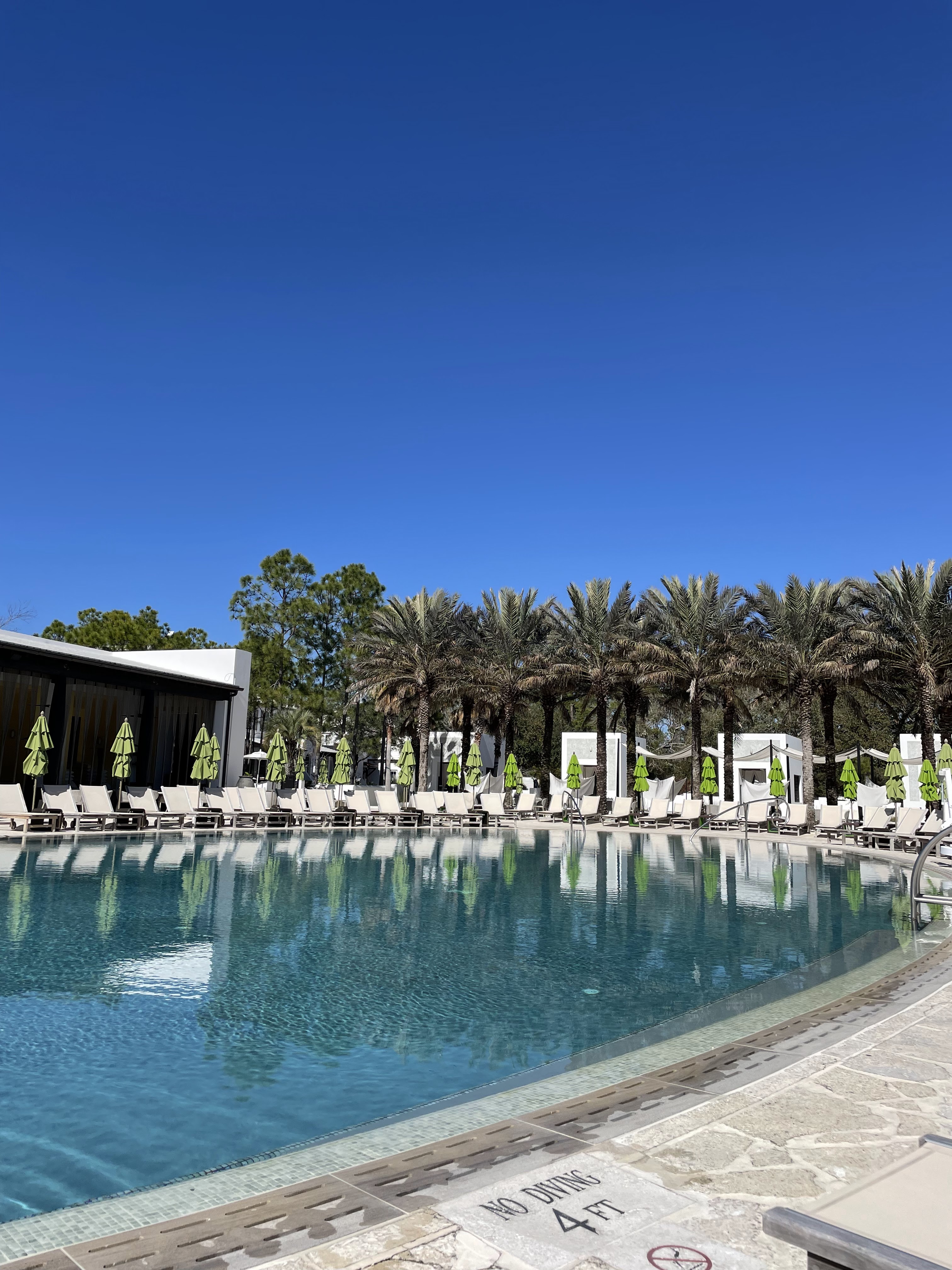 On our last full day, we started with a private Yoga class at the gorgeous Studio 30A. After a quick photoshoot with the group with a soundtrack of Lizzo, Shannon led our group through some gentle movement in their incredible, light-filled space. It was the perfect way to recuperate and move our bodies after a long day of champagne drinking the day prior. After yoga, everyone scattered to various pursuits, but I decided on a poolside lunch and lounge at the main Alys Beach pool. Upon arrival, attendants laid out towels on chairs for us and brought us a bucket of cold waters. The saltwater pool is heated, so even if you’re visiting during off-season, you can still enjoy a dip!