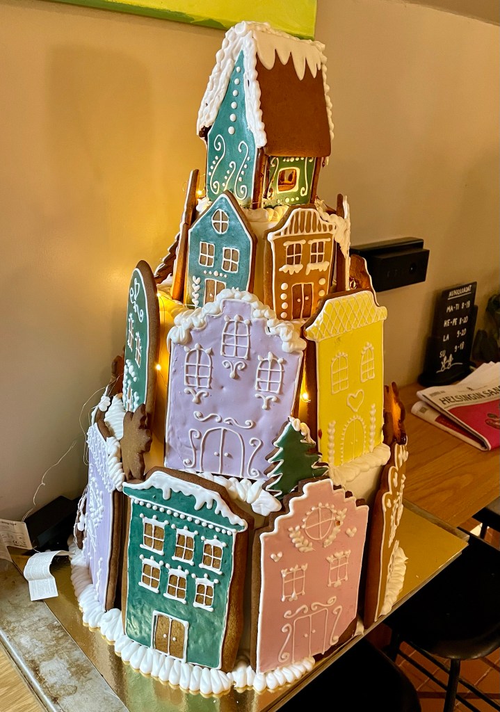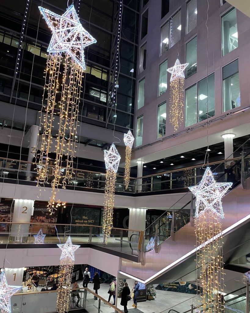 The rest of our time in Helsinki was largely made up of exploring various shops and restaurants, including an exciting trip to a Finnish drug store to get me some cold medicine. We had dinner one night at brick-oven pizza restaurant Capperi. The pizza could’ve been cooked a little longer, but Husband got a pistachio ice cream that he raved about. The next night we opted for a quick bite at Social Burgerjoint, an up and coming burger chain. Social is located in one of Helsinki’s many shopping malls, which are far more prevalent there than here in the US. I think a lot of it has to do with the fact that it is so cold there for so long that it’s both more pleasant and convenient to have everything (grocery stores, restaurants, box stores, etc.) all contained within one mega-complex. A bonus: the malls were decorated with really neat Christmas lights.