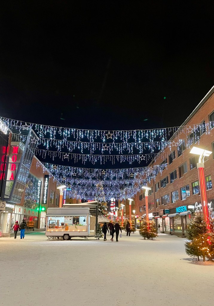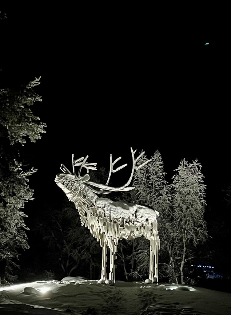 After settling in at the hotel, Husband and I bundled up to take a walk through the Rovaniemi town center. As was fitting for the gateway to the Santa’s Home, it was bedecked with Christmas lights. There were also displays made from ice, such as an Ice Nativity and an Ice Throne for photo ops. Basically, it was sparkly and magical, and we loved it.
