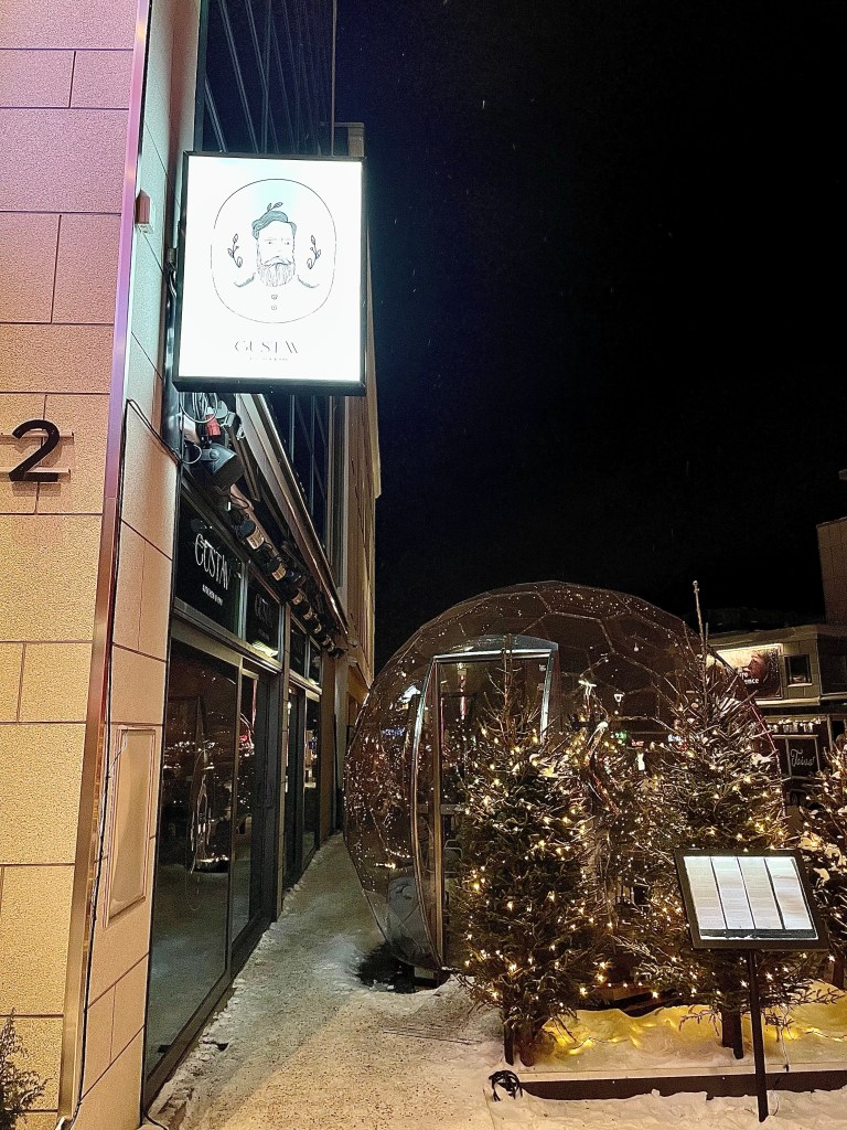 We stopped for dinner at Gustav Kitchen and Bar, which is situated right on the main drag. The interior is warm and cozy, and there are a couple “snow globes” outside available to reserve as well if you’re looking for a more unique experience. The meal started with complimentary sourdough bread, and we ordered a cheese plate to accompany it. While all three of the cheese provided were good, my favorite was a truffle manchego that I would do unspeakable things to find stateside. For my main course I ordered Arctic Char in a Lobster Sauce, and friends, it was incredible. I’m not usually a huge fish person, but this dish was cooked perfectly. The fish was flaky, the sauce was creamy, and it was packed with flavor. Finally, for dessert, we ordered a date cake with cloudberry sorbet. Normally, I’m a chocolate gal through and through, but this cake was indulgent and delicious. I would highly recommend visiting Gustav, but make sure you have a reservation and a little bit of patience with the service.