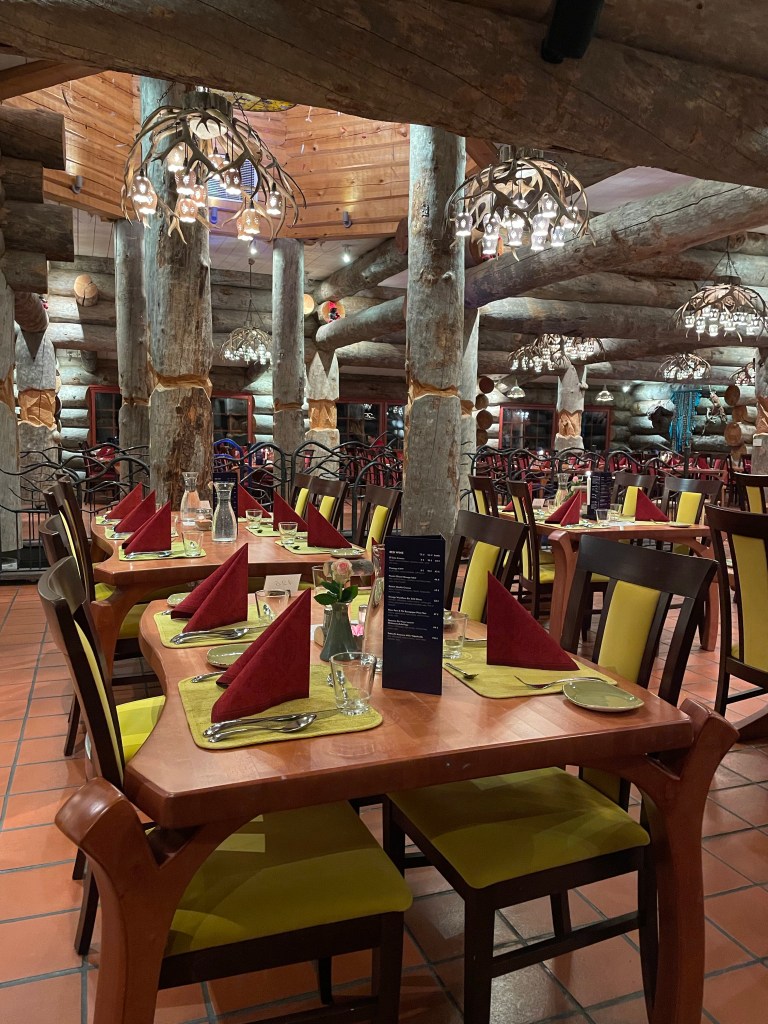 Meals are served in the Aurora Restaurant, which is located in the same building as the main reception desk. The most important thing to know about the restaurant is that they have one menu per night for dinner. For example, the menu for our first dinner was Salmon Soup, Roasted Duck Breast served with Parsnips, and Cloudberries with Caramel Sauce and Vanilla Ice Cream for dessert. If you have a food allergy or other aversion to what’s on that night’s menu, they do have a few modification options, but you pretty much get what you get. I say embrace it — how often do you get to eat traditional Finnish food? Also, be aware that they don’t serve lunch, but the breakfast buffet is open until 11am.