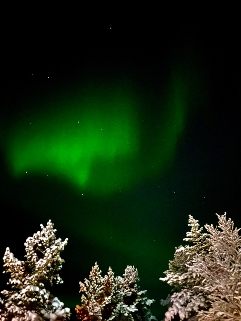 We got really lucky and were able to see the Aurora several times that night. It’s never guaranteed because the weather conditions have to be right, but I can confirm that it is insane to see. After we finished with our reindeer friends, we went back to our igloo and settled in for the night. Fortunately or unfortunately, jet lag had both Husband and I struggling to sleep. But that worked out to our advantage as the Aurora started dancing again in the wee hours of the morning, and we were able to toss on our coats over our pajamas and catch some incredible images. According to our reindeer guide, the lights that night were “Level 1,” meaning that they were to lowest strength. If this is the Level 1, I can only imagine what it looks like when you witness to strongest Level 5 lights. Maybe one day I’ll be able to experience that too.