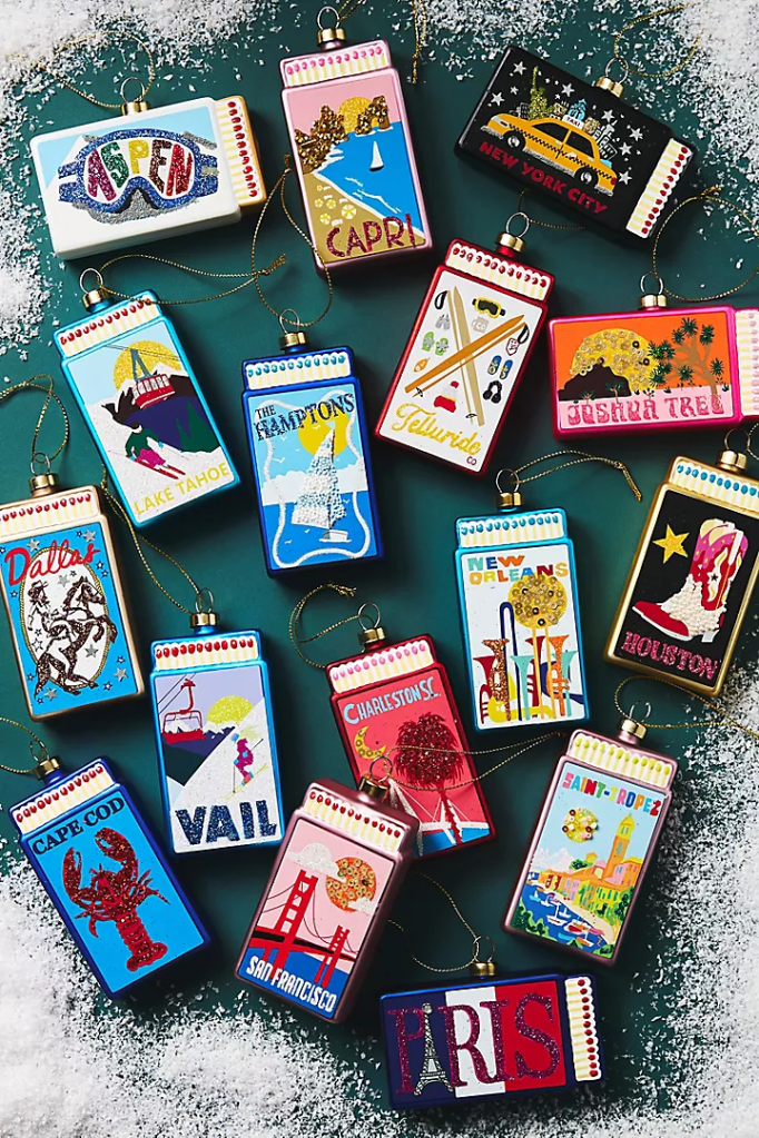 Destination Matchbook Ornament – $28 – Whenever I travel, I pick up a Christmas ornament from wherever I am. It’s so fun to unbox them every year and reminisce while decorating the Christmas tree. These adorable destination matchbook ornaments are a great gift for someone who maybe moved recently or is nostalgic about a favorite city or country.