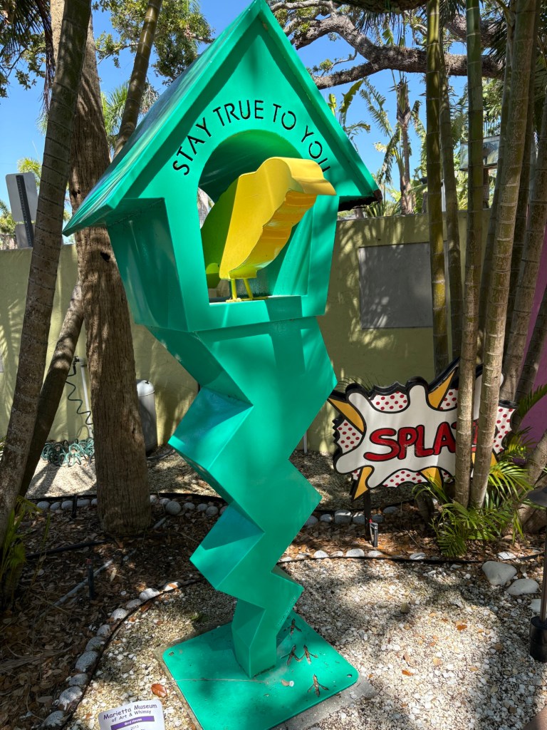One non-Oriole related attraction that Husband was ADAMANT about going to was the Marietta Museum of Art and Whimsy. We love us some whimsy. This little gem is 1000% worth a visit. Founder and curator Marietta Lee established the Museum in Sarasota in 2010 with the goal of showcasing art and bringing people joy. We spent about an hour perusing the installations and wandering through the sculpture garden. Around every corner was something to bring a smile to your face, whether it was glitter flooring, colorful giant inchworms on the trees, or a mosaic on one of the garden walls. There are a few interactive areas as well. As couple of logistical notes: Admission is free, but donations are encouraged, and make sure you check the website for their limited open hours.