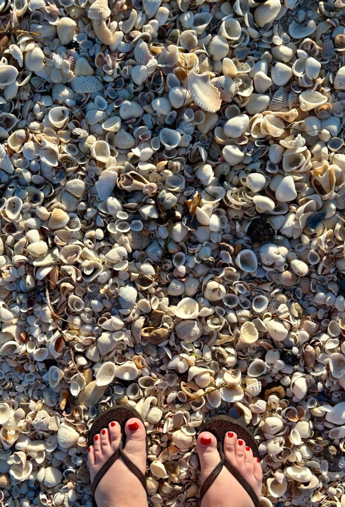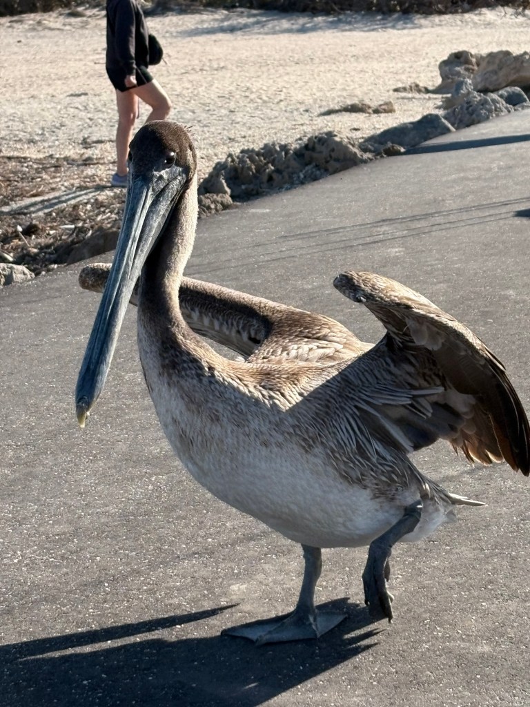 On our second morning, we got up early and headed to Casey Key to hunt for shark teeth. There are a number of beaches around the Venice area that are known for being full of shark’s teeth. Unfortunately, a lot of them remain closed due to damage from Hurricane Milton, but check out Google Maps to find out which ones are open. We ended up at North Jetty Beach off the Venice Inlet. The beach there is absolutely covered with shells, and within minutes, we had located our first shark’s tooth. After about an hour of searching, we ended up with maybe 3-4 whole teeth and several more of what we think were pieces of teeth. We also had a close encounter with a pelican that was trying to steal fish off of people’s lines. Everyone came out unscathed, but the trauma of watching a pelican charge at you remains seared into my memory. Husband loved every second of it.