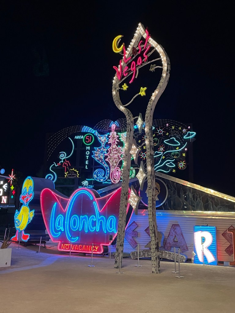 One of the places I have always wanted to see is the Neon Boneyard, which is an open air museum of sorts featuring original and restored neon signs from Las Vegas past. We scheduled a nighttime guided tour for maximum neon enjoyment, and I would highly recommend the experience. Our tour guide, Chelsea, was knowledgeable and funny. She led us through the exhibit, pointing out various iconic signs, and sharing their history and relationship with Las Vegas. I am a big fan of shiny and brightly colored objects, so this was basically a delightful fever dream for me. Highly recommend.