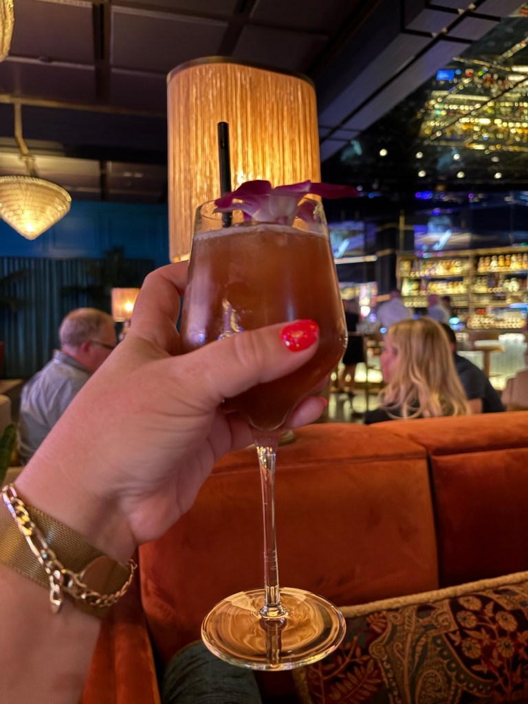 Our chosen pre-dinner gathering location within the Venetian was at the Juliet Cocktail Bar, which is located right off the casino floor. The people watching is unparalleled and the cocktails were tasty. It was also an easy place to find room for a group and there was usually live music. My personal favorite was the piano player who was performing covers of recent pop hits. Please enjoy the above photo of my hand holding an aesthetic beverage — it seemed like the epitome of art to me at the time, and I wanted to showcase the fringe lampshade hanging behind said beverage. This is the content the people want, I am sure of it.