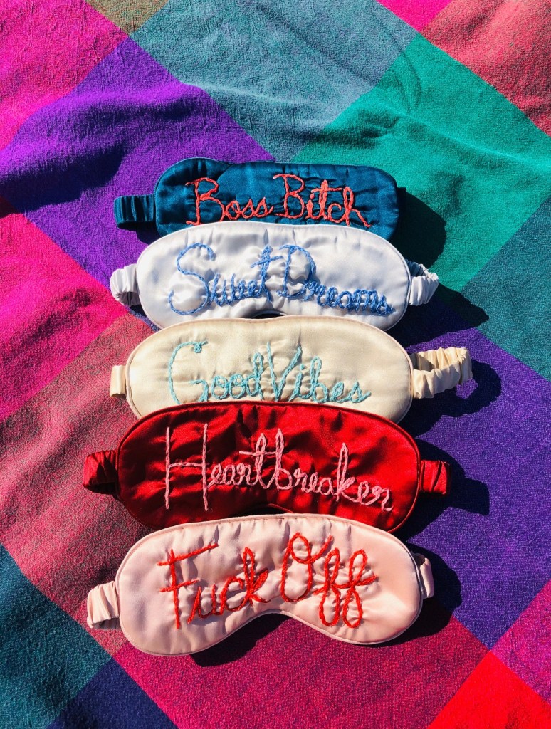 Custom Hand-Embroidered Eye Masks – $55